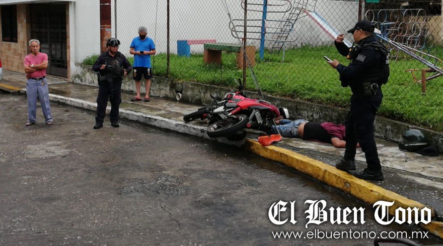 Córdoba, Ver.-Con abrasiones y laceraciones en el cuerpo resultó un joven, luego de perder el control de su motocicleta cuando circulaba en la avenida Adolfo López Mateos en la unidad habitacional Santa Margarita.