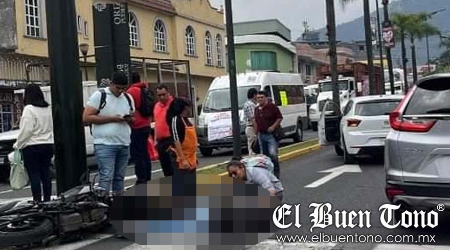 Orizaba, Ver.- Un motociclista resultó lesionado al derrapar, presuntamente impactado por un vehículo, este jueves por la tarde en la Oriente 6 esquina sur 19.