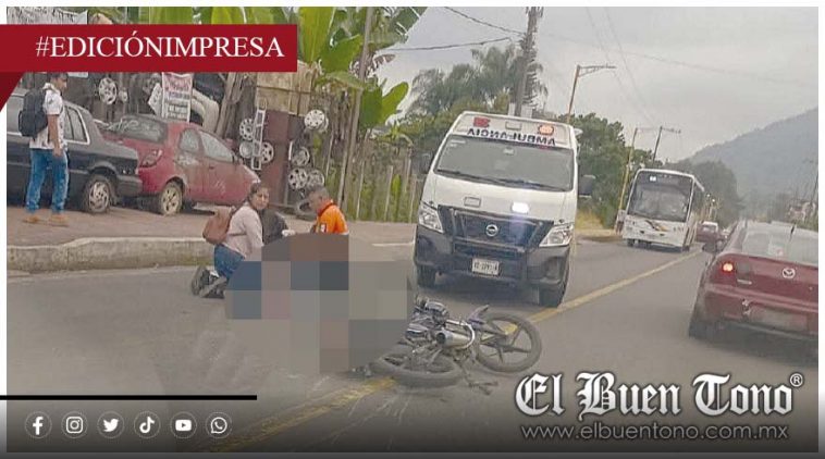 Chocamán.- Un joven motociclista resultó lesionado al derrapar sobre la carretera federal Fortín–Huatusco, a la altura de Chocamán.