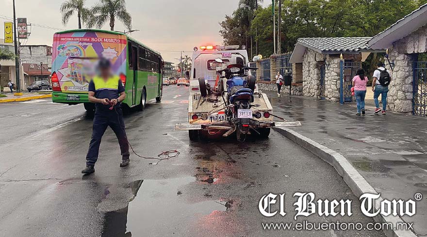 El vehículo, una motocicleta de color azul, con placas 31YTE8 particulares del estado de Veracruz fue trasladada a las instalaciones de la Policía Vial para realizar el deslinde de responsabilidades en los hechos.
