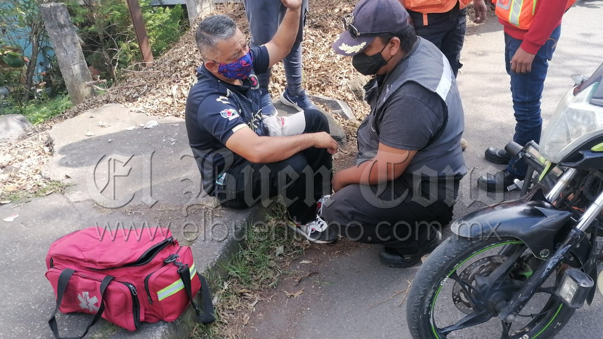 Fortín, Ver.- Un motociclista resultó herido durante la tarde del sábado, siendo atendido por grupos de auxilio, luego de derrapar la motocicleta en que viajaba, sobre calles de la colonia Melesio Portilla, teniendo que intervenir las autoridades de Tránsito Estatal.
