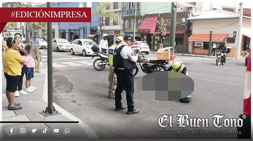 El primer incidente ocurrió en la Avenida Poniente 7, esquina Sur 6, frente a la Parroquia de San José, en pleno centro de Orizaba. De acuerdo con versiones policiales, el conductor de una motocicleta de reparto de pizzas perdió el control por exceso de velocidad y derrapó sobre el carril de baja, en dirección a Río Blanco.