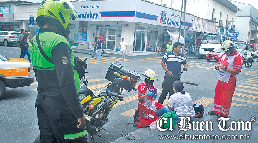 Córdoba.- Una pareja que viajaba en una motocicleta, resultó lesionada al derrapar en la avenida 2 y calle 5, donde evitaron chocar contra un autobús que se les cruzó.