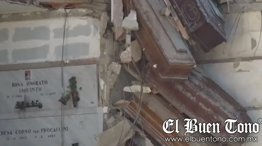 Una parte del complejo no se ha derrumbado, pero algunos ataúdes han quedado al descubierto y hasta colgando, corriendo el riesgo de precipitarse al vacío.