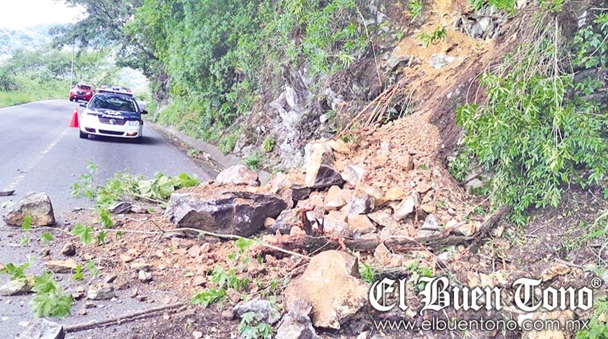 Los hechos ocurrieron la tarde de ayer cuando un montículo de tierra se desgajó del cerro y cayó sobre la carretera federal antes señalada.