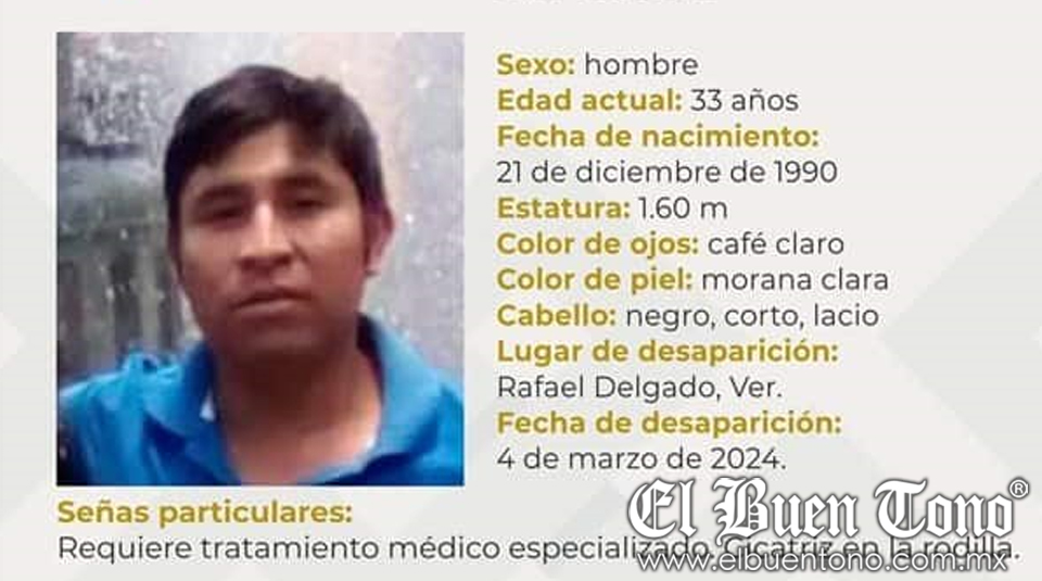 Rafael Delgado.- Este martes fue reportada de manera oficial la desaparición de un hombre, vecino del Segundo Barrio del municipio de Rafael Delgado; familiares del extraviado acudieron a las oficinas de la Comisión Estatal de Búsqueda de Personas con sede en Orizaba.