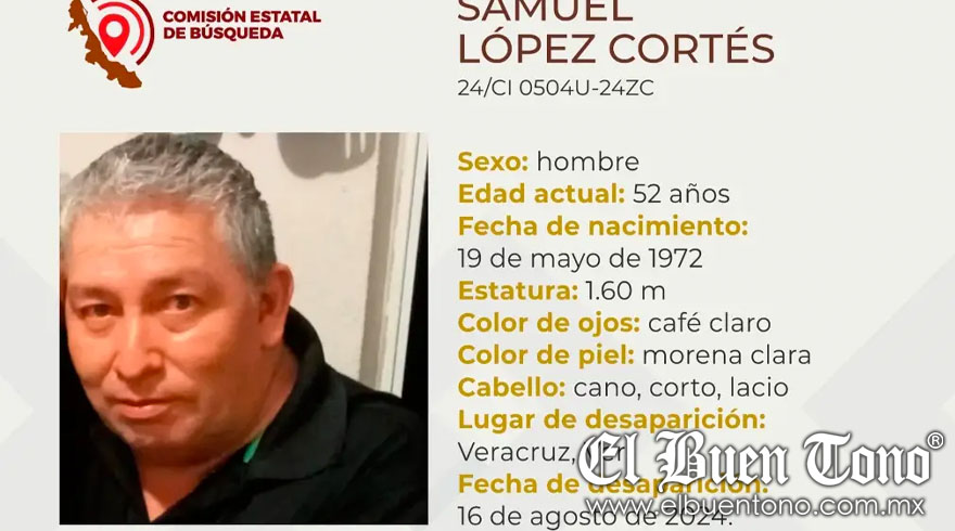 Veracruz.- La Comisión Estatal de Búsqueda ha emitido un reporte sobre la desaparición de Samuel López Cortés, un hombre de 52 años de edad, en el puerto de Veracruz.