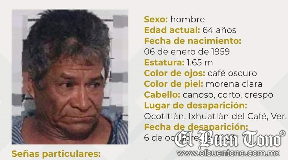 Ixhuatlán del Café.- Familiares del señor Gregorio Magín Rosas, de 69 años, originario de la comunidad de Ocotitlán, pidieron el apoyo de la ciudadanía para localizarlo. Él desapareció el viernes 6 de octubre en ese municipio.