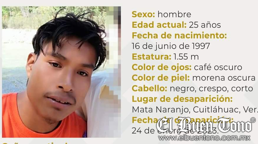 Cuitláhuac, Ver.- Un joven identificado como Jorge Sánchez García, 25 años de edad, vecino de la comunidad Mata Naranjo, se encuentra como desaparecido desde el día 24 de enero. Familiares piden la colaboración de las autoridades y de la ciudadanía en general para localizarlo sano y salvo.