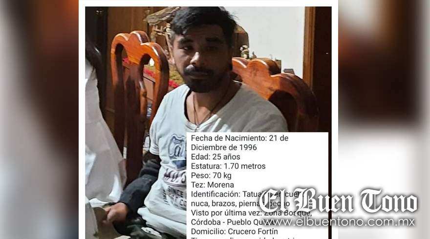 Córdoba.- Cristian Paul Suazo, de 25 años de edad, con domicilio en Crucero Nacional perteneciente a Fortín, se encuentra desaparecido desde el pasado domingo y es buscado por familiares y amigos tras se visto por última vez cerca de la colonia Rincón del Bosque y Pueblo Quieto.