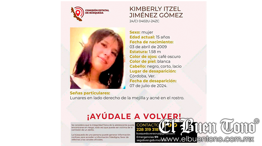 La Comisión Estatal de Búsqueda emitió un boletín de emergencia, y puso a disposición el número 2283193187 o al 911, para brindar información que ayude a dar con su paradero.