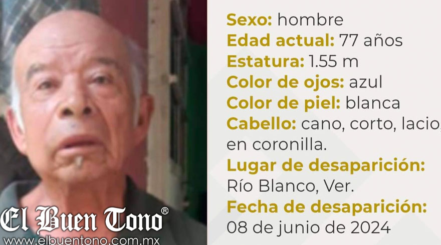 De acuerdo con la ficha de búsqueda, el adulto mayor fue visto por última vez desde el 08 de junio de este año en calles de Río Blanco.