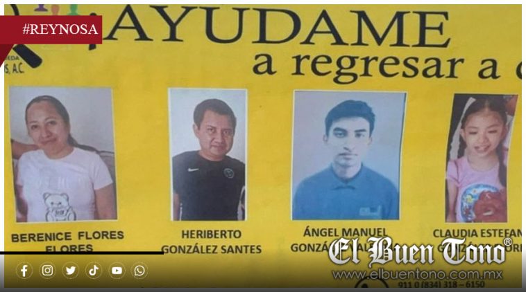 “En colaboración con la Fiscalía Especializada en la Investigación de los Delitos de Desaparición Forzada de Personas, la Comisión Estatal de Búsqueda de Personas Tamaulipas solicita el apoyo para localizar a Berenice Flores Flores, Heriberto González Santes, Ángel Manuel González Valencia y Claudia Estefanía González Flores”, se informó en un comunicado oficial.