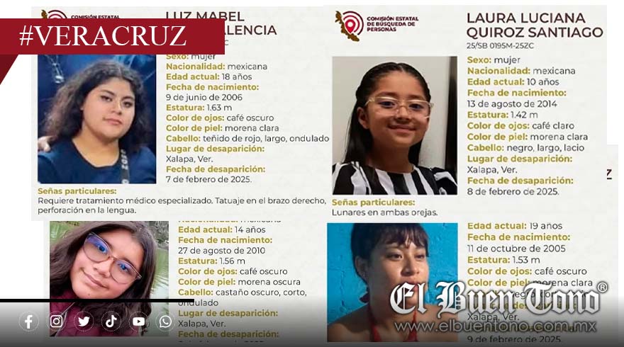 Xalapa, Veracruz.- Un repunte en desapariciones se registró en la capital veracruzana este fin de semana, con cuatro mujeres reportadas como desaparecidas en los últimos dos días, un hecho inusual en los últimos meses.