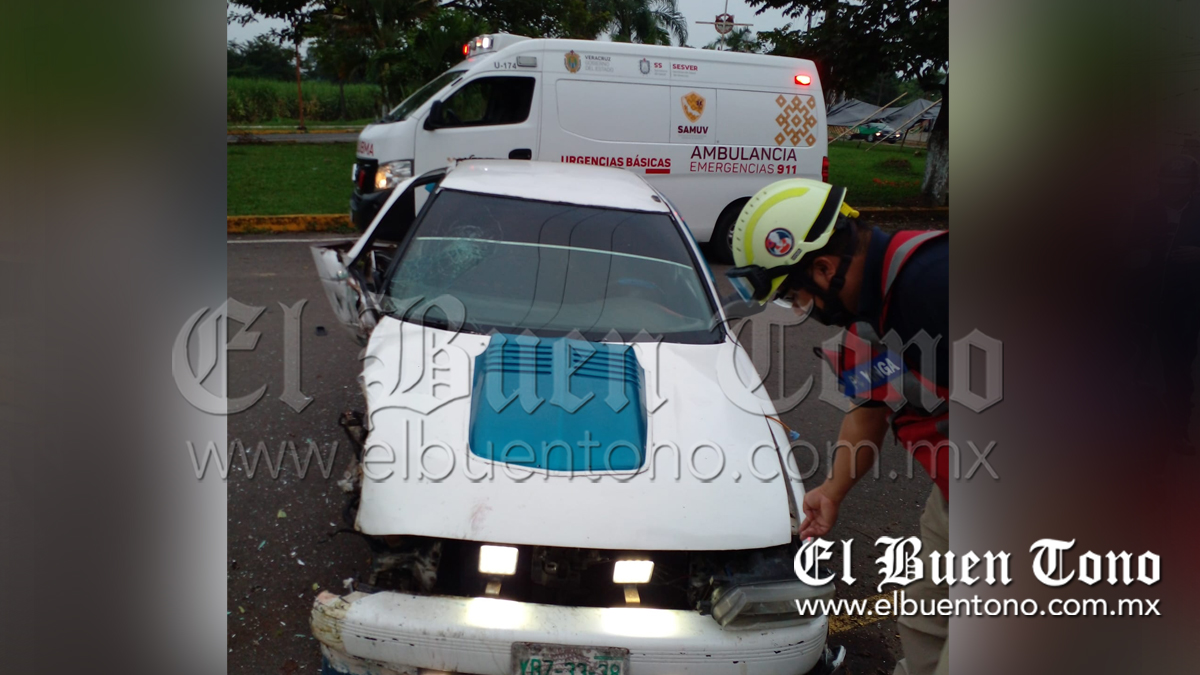 Yanga, Ver.- Un automóvil Nissan Tsuru terminó como pérdida total luego de subir al camellón y chocar contra una palmera, esta tarde en la carretera federal Córdoba-Veracruz, a la altura de la comunidad Palmillas. El accidente se registró debido al exceso de velocidad y la falta de precaución. El conductor descendió de la unidad y se retiró del lugar.
