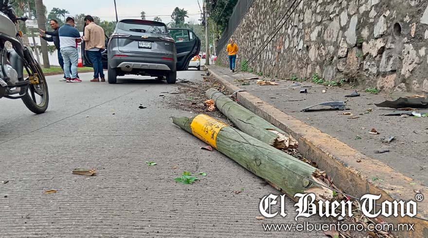 El conductor perdió el control en una curva, cuando presuntamente manejaba a exceso de velocidad y se impactó contra el poste de madera que sostenía cables de telefonía.