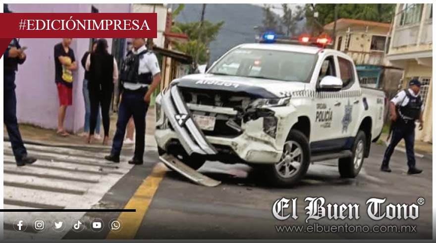 El percance ocurrió la mañana del lunes 23 de junio, cuando la unidad oficial circulaba realizando su recorrido de vigilancia cuando impactó a una camioneta particular al querer incorporarse a la vía principal.