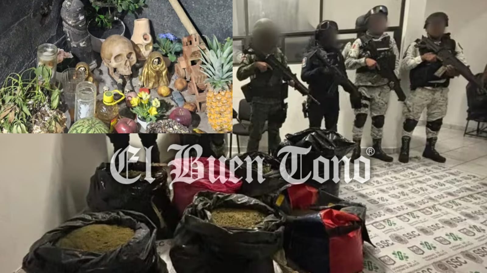 En Ciudad de México, las autoridades encontraron un altar de santería junto con 200 kilogramos de marihuana.