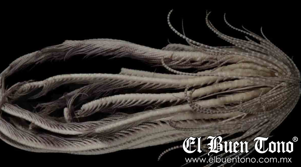 Internacional.- Fue descubierta una extraña criatura con 20 brazos segmentados, de los cuales cuelgan hileras de filamentos que parecieran ser plumas, en el mar antártico.