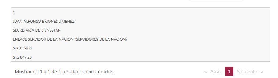 El servidor público Juan Alfonso Briones Jiménez aparece en plataforma oficial con dos plazas activas.
