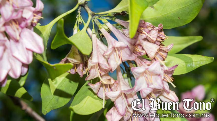El árbol, que alcanza entre dos y cuatro metros de altura, presenta ramillas con estructura laminar resinosas y pequeñas flores de color lavanda que recuerdan a las de la jacaranda. Florece en septiembre y da frutos en octubre y noviembre, y su belleza resalta aún más debido a su exclusividad en la Sierra Madre Occidental, una zona de clima templado-subhúmedo.