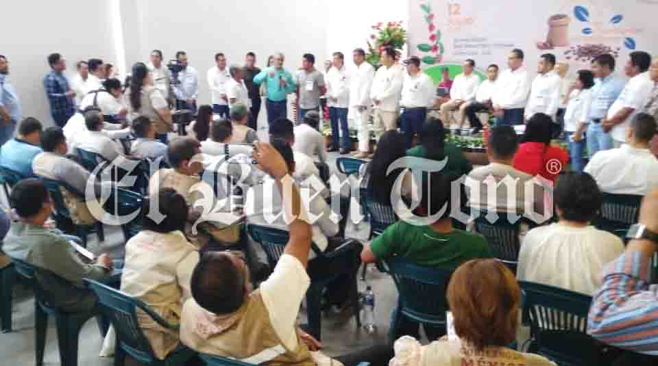 Esta mañana, en la ex hacienda de Toxpan se lleva a cabo el Encuentro Nacional de Territorios Cafetaleros del programa Sembrando Vida, donde se dieron cita cientos de productores y sembradores de dicho programa.