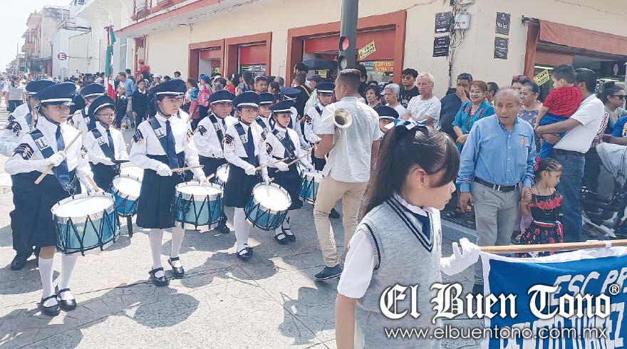Entre los contingentes destacaron 23 primarias, 11 secundarias, nueve bachilleratos, siete universidades y seis corporaciones, incluyendo la Guardia Nacional y el Ejército Mexicano, así como Bomberos y Protección Civil.
