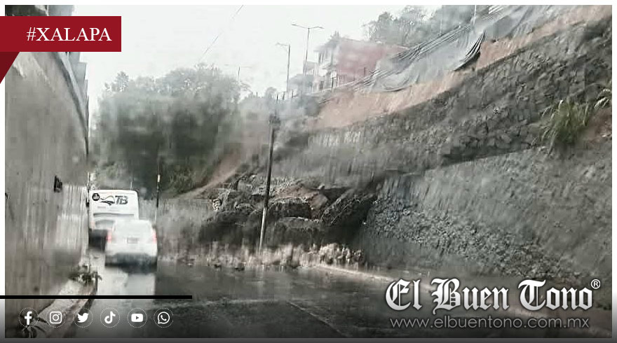 Xalapa, Ver.- Las intensas lluvias registradas desde la noche del lunes y durante la mañana de este martes provocaron un deslave en la avenida Lázaro Cárdenas, a la altura de la colonia Revolución, justo antes de llegar a la gasolinería Macultepec.