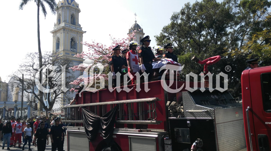 Córdoba.- Con cuatro toques largos de la sirena del Palacio Municipal, diversas unidades de Bomberos y Cruz Roja, dan el último adiós a la socorrista Adriana Preciado Prado.