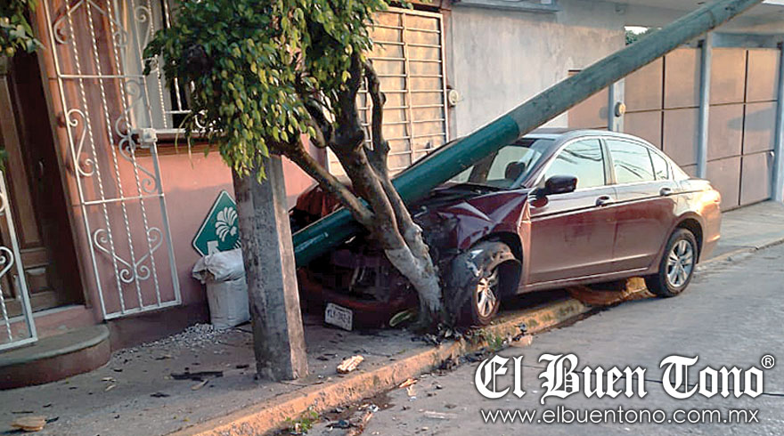 Córdoba.- El exceso de velocidad y el alcohol fueron una mala combinación para un joven de 24 años, quien terminó desbaratando su vehículo contra el poste de la Comisión Federal de Electricidad