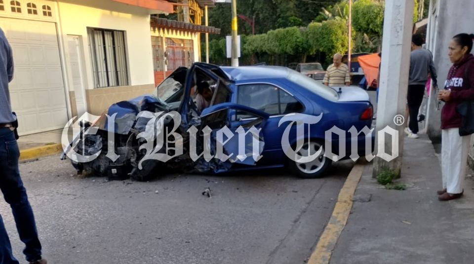 Huatusco, Ver.- Un automóvil particular quedó destrozado en su totalidad al chocar contra la cochera de una vivienda la mañana de este viernes en la calle 11, entre avenida 2 y 4.