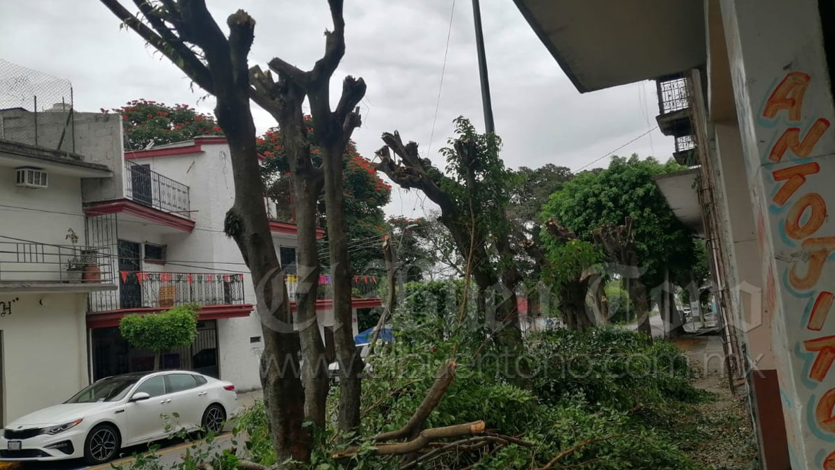 CÓRDOBA.- Vecinos de la avenida 9 entre calles 29 y 31de la colonia La Estación, mostraron su indignación al percatarse que la mañana de este viernes, varios árboles fueron destrozados por personas desconocidas. “Cuando abríamos nuestros negocios nos dimos cuenta que ya estaban macheteados porque realmente no vimos que fuera gente del Ayuntamiento, sólo amanecieron sin ramas y ninguno nos dimos cuenta”, explicó una vecina.