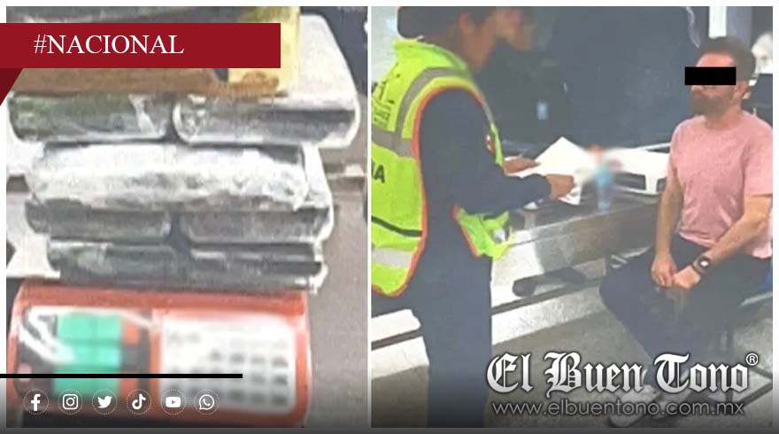 En la Terminal 2 del Aeropuerto Internacional de la Ciudad de México, se detuvo a una persona y se aseguraron 15 paquetes con 17.4 kilos de cocaína.