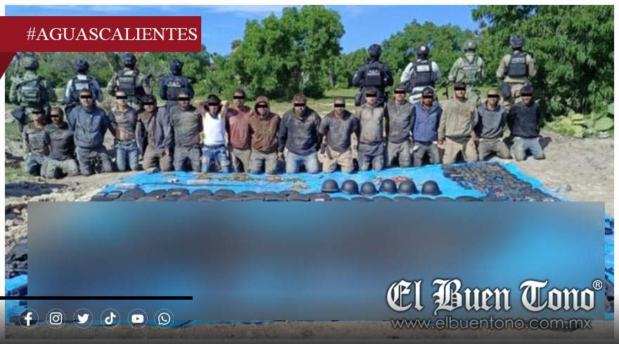 Aguascalientes, Ags.- En un contundente golpe contra el crimen organizado, autoridades del Gabinete de Seguridad informaron este sábado sobre la detención de 18 presuntos integrantes del Cártel Jalisco Nueva Generación (CJNG), tras un operativo conjunto del Ejército Mexicano, Guardia Nacional y la Secretaría de Seguridad y Protección Ciudadana (SSPC) en el municipio de Rincón de Romos, al norte del estado.