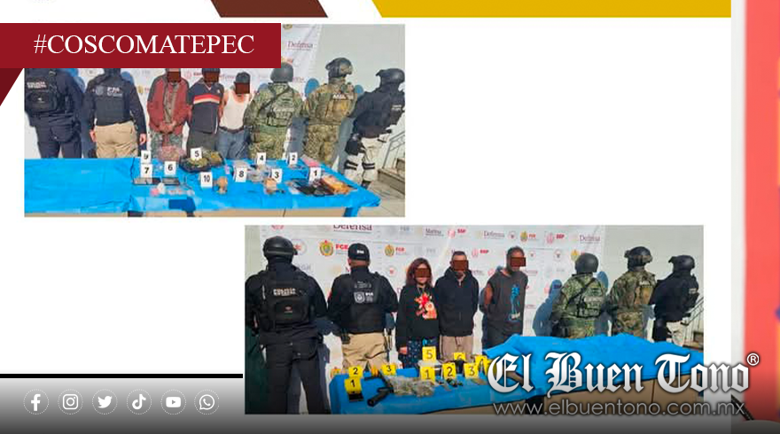 En la calle Santos Degollado, las autoridades detuvieron a Emilio “N”, Adolfo “N”, Cipriano “N” y a una adolescente cuya identidad se mantiene bajo resguardo. Durante la inspección, se aseguraron diversas dosis de hierba verde con características de marihuana, una sustancia granulada color blanco, básculas grameras, teléfonos celulares, pipas, cartuchos balísticos y un artefacto explosivo de fabricación casera.