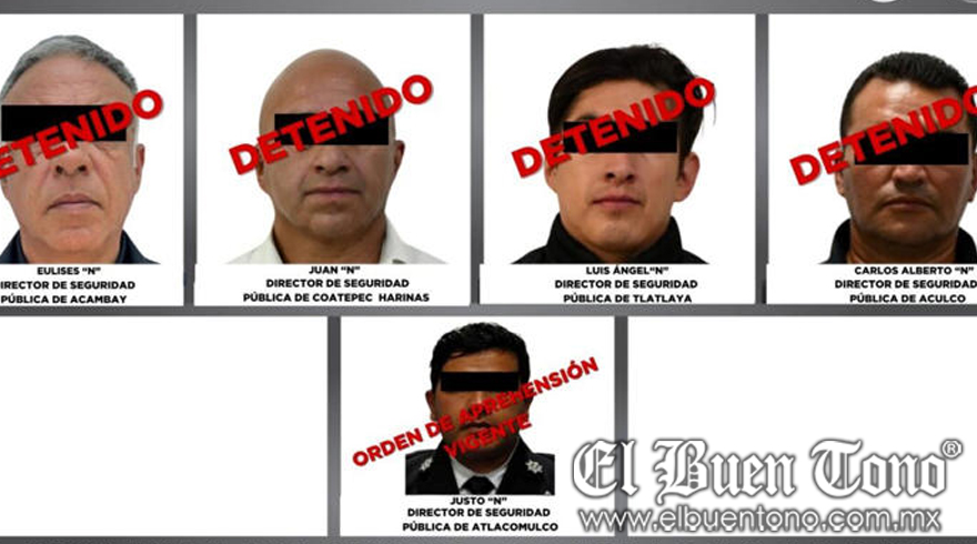 La Fiscalía también logró establecer la probable intervención de Justo “N”, director de Seguridad Pública del municipio de Atlacomulco, en actividades de extorsión a nombre del mismo grupo criminal. Este sujeto cuenta con orden de aprehensión vigente; la Sedena, Semar, SSPC, SSEM y Fiscalía Edomex trabajan para dar cumplimiento a dicho mandato.