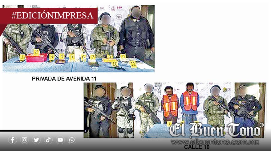 El segundo cateo se llevó a cabo en la calle 10 de la misma colonia, durante el cual se detuvo en flagrancia a Alberto “N” y Carlos Augusto “N”.