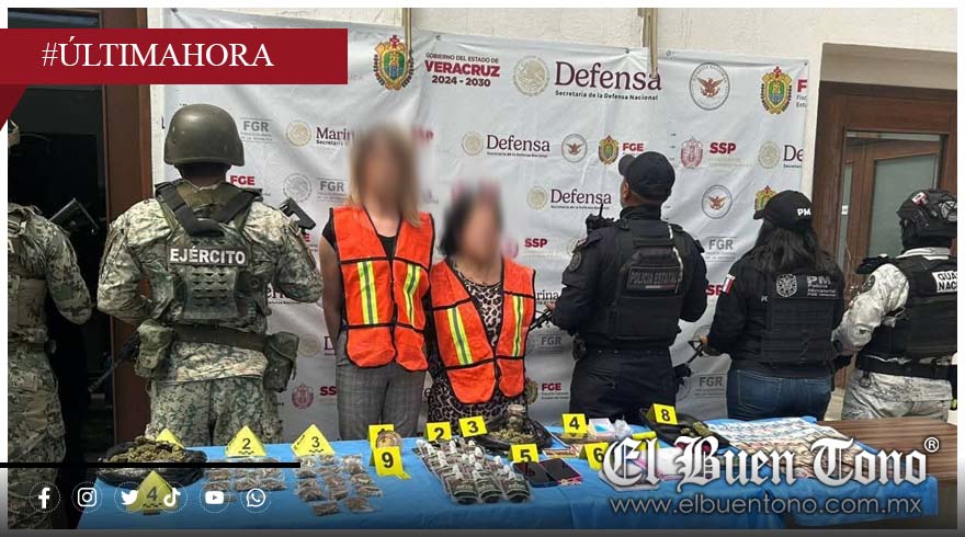 Fortín.- Elementos de seguridad pública estatal y federal detuvieron a María “N”, de 77 años, y a Eduardo “N”, de 34 años, de ocupación estilista; mamá e hijo, a quienes les aseguraron varias bolsitas con marihuana y dinero en efectivo durante un cateo realizado esta tarde en el fraccionamiento Villas de Santa Teresa.
