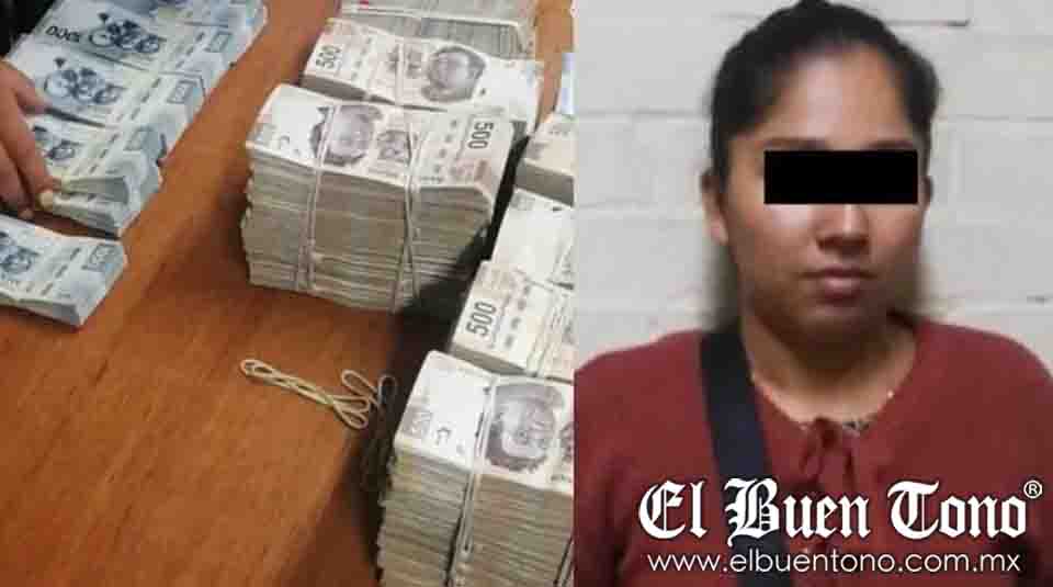 CDMX.- El Aeropuerto Internacional de la Ciudad de México (AICM) informó que elementos de la emar y de la Secretaría de Seguridad capitalina detuvieron a una mujer que transportaba 5 millones 50 mil pesos.