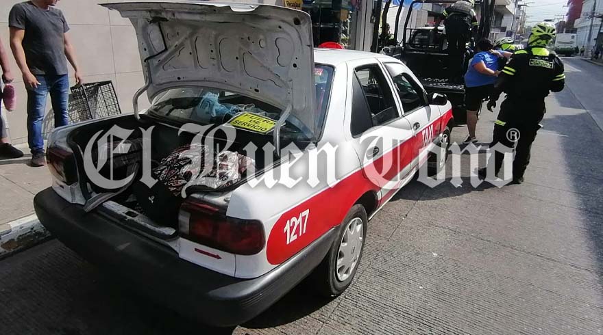 Fue en la calle 11, entre avenidas 1 y 3 de la colonia centro, donde fue intervenido el vehículo de alquiler número 1217, y en una revisión de la cajuela se encontró parte de lo sustraído en al menos cinco comercios.