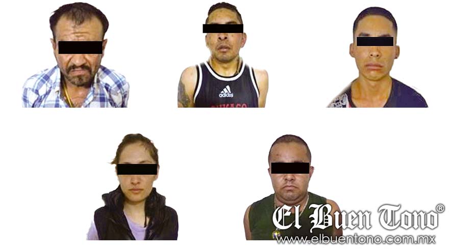 Los detenidos fueron identificados como Luis Daniel “N”, Ignacio “N”, Cristofer “N”, José Antonio “N” y Frida “N”, los cuales oscilan en edades de entre los 30 y 55 años, respectivamente.