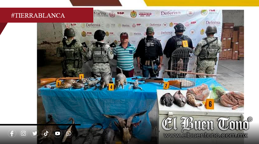 Así mismo se aseguraron caparazones de tortugas, iguanas disecadas, aves, una serpiente coralillo, diversos tipos de carnes de animales, armas de fuego, una caja de cartuchos balísticos, armadillos, un mapache y un tejón disecados, una cabeza de cabra y un halcón en una jaula.