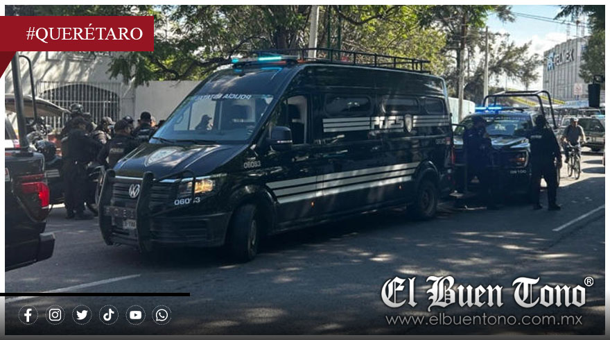 Querétaro, Qro- Nueve personas que se identificaron como escoltas del director del Sistema de Agua Potable de Cortazar, Guanajuato, fueron detenidas este miércoles en un fuerte operativo de la Policía Estatal de Querétaro, desplegado sobre la avenida Zaragoza, una de las principales vialidades del centro histórico de la capital.