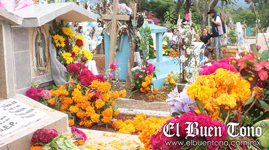 Entre los lánguidos susurros de las hojas y el nublado del cielo que amenazaba un torrencial, pero sólo hubo una suave brisa, los visitantes se afanaban en arreglar las tumbas, mientras otros se abrazaban y con el sentimiento salían las lágrimas, compartiendo recuerdos y celebrando a aquellos que se adelantaron en el camino.