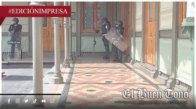 Aunque en el Palacio Municipal no se colocaron policías municipales, sí se desplegó un contingente antimotines frente al Palacio de Hierro, contradiciendo su postura inicial y enviando un mensaje de tensión innecesaria.