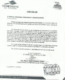 Apenas el 2 de marzo, Miguel Ángel González Zapíén, director general de Hidrosistema de Córdoba, emitió una circular dirigida a “todo el personal confianza y sindicalizado” que ha encendido focos rojos entre los trabajadores y expertos en gestión pública. El documento, que lleva el sello de la paramunicipal, advierte que cualquier empleado que no se conduzca con “probidad”, definida como honradez, integridad, rectitud y honestidad, o que sea denunciado por “violencia contra compañeros, jefes o ciudadanos”, será sujeto a “medidas de carácter particular” y sanciones legales.