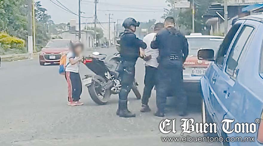 Ambos fueron llevados a la Comandancia municipal arrestados, mientras que el menor fue resguardado por personal del DIF en espera del arribo de familiares para entregarlo sano y salvo.