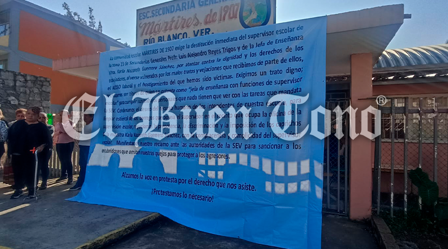 Río Blanco.- Esta mañana, personal docente y administrativo de diversas secundarias generales en los municipios de Río Blanco, Maltrata, Camerino Z. Mendoza y Acultzingo iniciaron un paro de brazos caídos, exigiendo la destitución de Luis Alejandro Reyes y Karla Nazaret Guerrero, supervisor y jefa de enseñanza de la supervisión escolar de la zona 23.