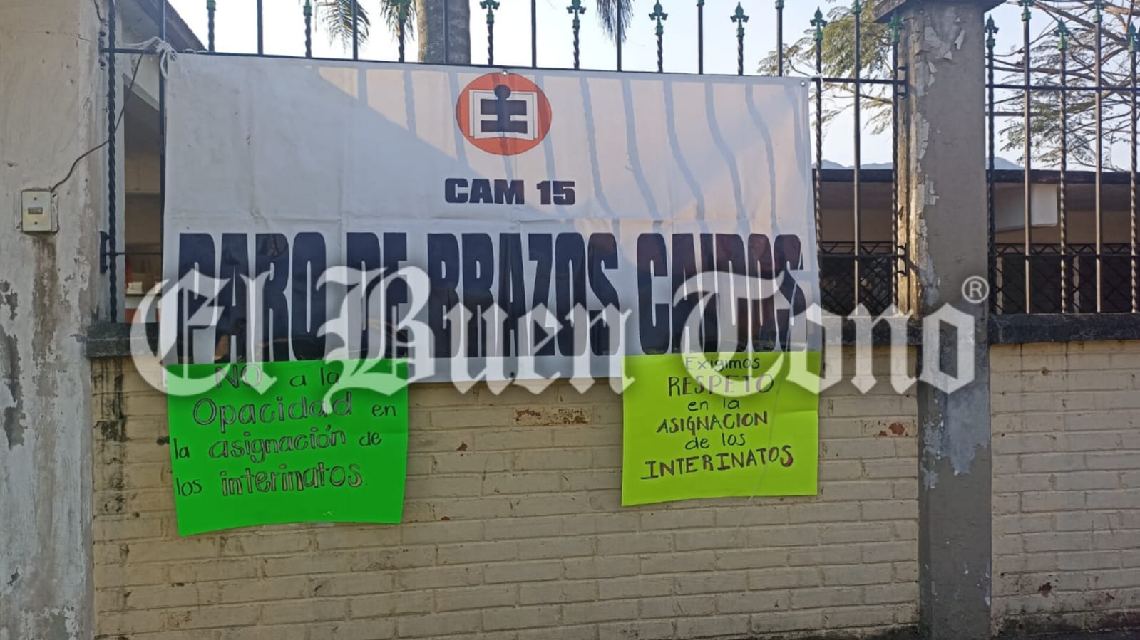 Orizaba, Ver.- Maestros del Centro de Atención Múltiple 15, realizan en estos momentos un paro de brazos caídos, para exigir a las autoridades se respete el escalafón, en la asignación de horas de trabajo.