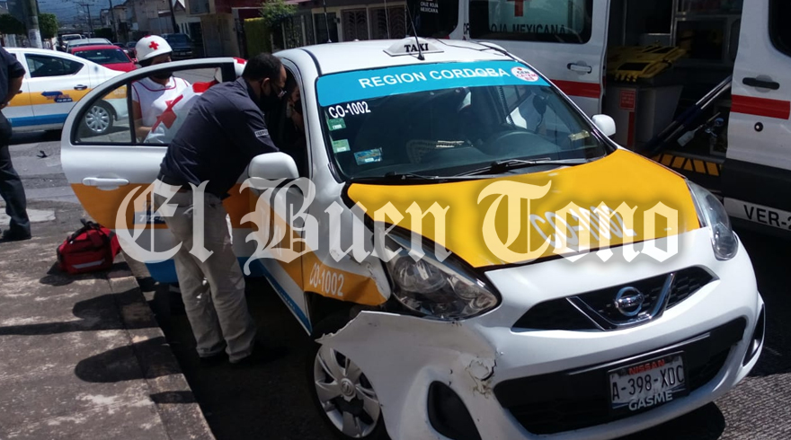Córdoba.- Una doctora que viajaba como pasajera en el taxi Nissan-March CO-1002, resultó lesionada teniendo que ser atendida por paramédicos y trasladado al hospital para recibir atención médica, luego de que fueran impactados por un vehículo Matiz, debido a que que su conductor no respetó la preferencia vehicular y ocasionó el accidente en el cruce de la avenida 23 y calle 1 del fraccionamiento Alameda, interviniendo las autoridades de Tránsito Municipal.